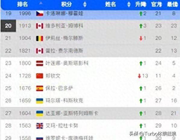 在郑钦文排名下滑的同时,凯斯、鲍里妮、莱巴金娜分列第七至第九位。 这些排名变化直接影响了年终总决赛的参赛阵容,也反映了女子网球竞争格局的不断变化。